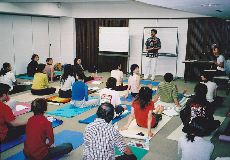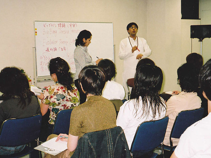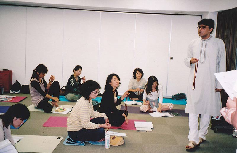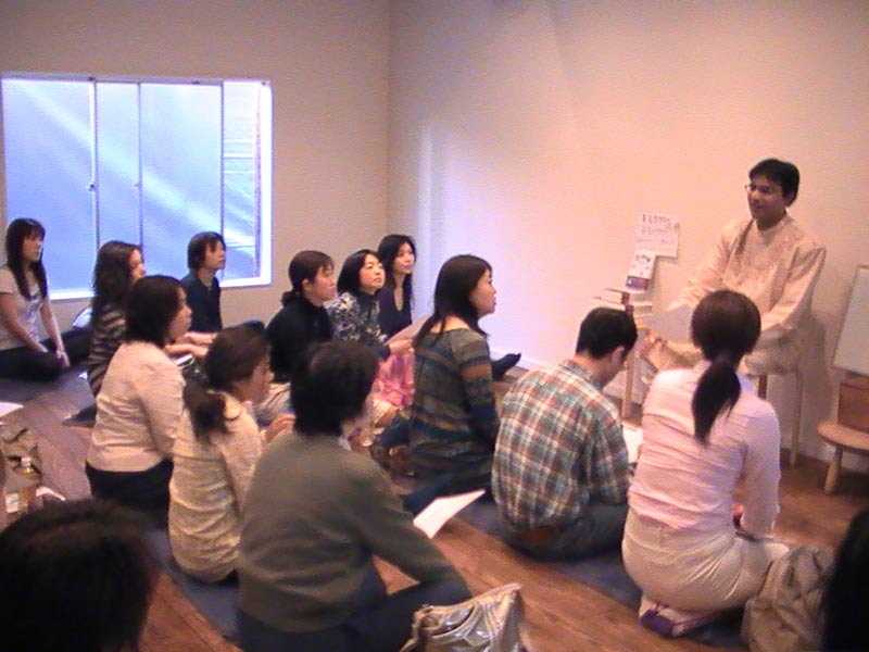 Young Japanese students interested to listen about ancient Indian Yoga from Acharya Aman